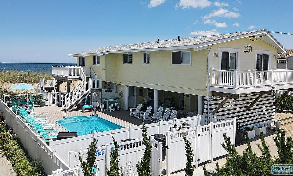 Ideal beach house for unwinding and enjoying the beautiful Ocean and Beach views. Panoramic view of beach and ocean. Updated Kitchen and Baths add to your comfort. Oceanview from most rooms. Six bedrooms and five baths! Best rental for an oceanfront home. Up to date beach decor. Solar heated pool in season. Garden. Plenty of decks. Book early. Two dishwashers.