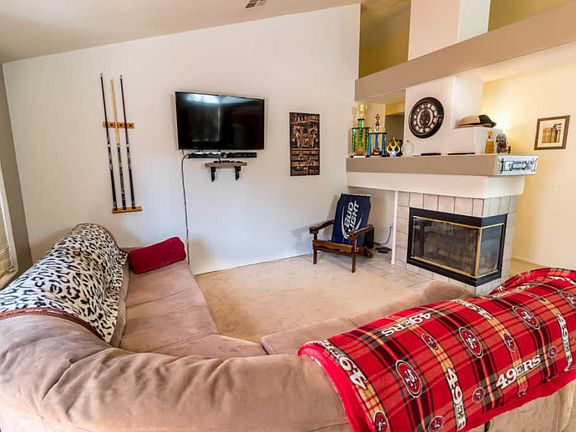 Beautiful single story home in West Palmdale. The front yard is landscaped with a mature tree that offers plenty of shade. The living room is open to the dining room and the family room is open to the kitchen perfect for entertaining. The kitchen features tile floors, tile counter tops, lots of storage and an island. The Master Bedroom has access to the rear yard and an attached bathroom. The rear yard is landscaped and has a covered patio.