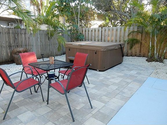 Furnished New storm impact windows. Just a block to the beach, Walk to library. Great beach house. View of a canal from inside the home. Shows like a model. This is in the weekly rental zone. Don't wait.