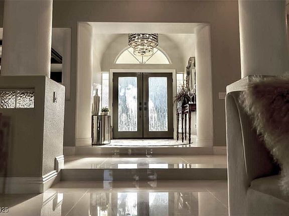 One of only four homes behind the gate. Features a basement perfect for guests or a movie theater, a family room with a gorgeous bar, pool view, and stunning ceiling design. Includes a 5-car garage plus covered RV parking. Conveniently located near South Point Casino with easy access to California. Furniture sold separately. Move-in ready!