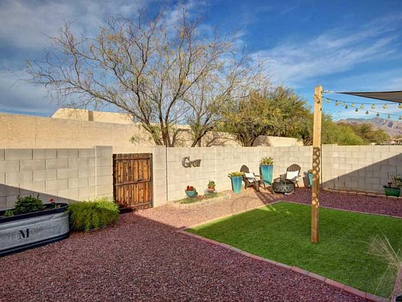 Your visions are alive in this charming 3 bed 2 bath home in the Tierra Del Paraiso community of Tucson! Meticulously maintained interior offers an open floor plan with a neutral color palette for easy personal design! Eat in kitchen features ample counter space, and a raised breakfast bar. Each bedroom is spacious and has ceiling fans. Master has a walk-in closet and a large garden tub. Relax in the serene backyard with mountain views, green grass, and low care landscape! This home will not be on the market long! See it today and make it yours! This home is extra cozy and ready for a new owner to fall in love with it.
