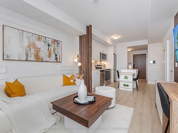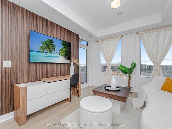 Discover luxury living in this fully furnished 1-bedroom + den suite located in the stunning 20-storey Greenwich Condos by Branthaven Homes. With high-end finishes throughout, the open-concept layout features an expansive kitchen island (seating up to 4), stainless steel appliances, quartz countertops, and wide-plank Vinyl flooring. The den is equipped with a bed and a desk, while the bedroom offers hotel-style comfort. Floor-to-ceiling windows fill the space with natural light and lead to a generous balcony. One underground parking spot and a storage locker are included. Residents enjoy resort-style amenities: a 24/7 concierge, fitness & yoga studio, coworking lounge, rooftop terrace with BBQ/fire pit, and pet-spa. Just steps from dining, shopping, Sheridan College and transit links to Hwy 403/407. This turnkey home offers elevated, effortless living for a small family or professionals seeking both design and convenience.
