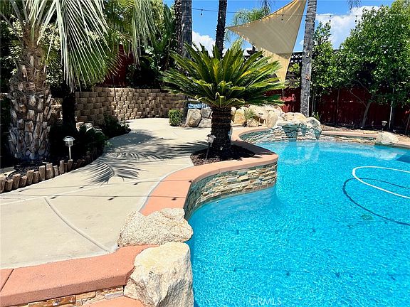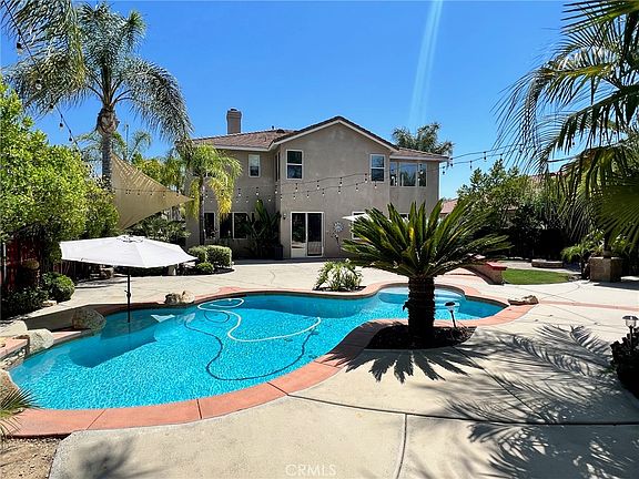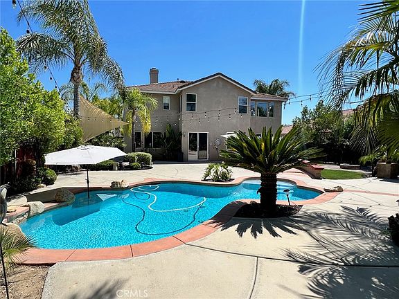 Welcome to 32402 Duclair Rd in the heart of French Valley. This property offers 5 bedrooms and 3 baths sprawling over 3200 square feet of living space. As you enter the home you're greeted by 20ft ceilings and a formal entry. The main level offers a down stairs bathroom and bedroom, updated kitchen, formal dining room, and living room. Upstairs you'll find the Master bedroom which offers his and hers walk-in closets, Laundry room, and three bedrooms. The backyard offers a sparkling pool, palapa, outdoor BBQ, and firepit all of which are complemented by luscious green landscaping.