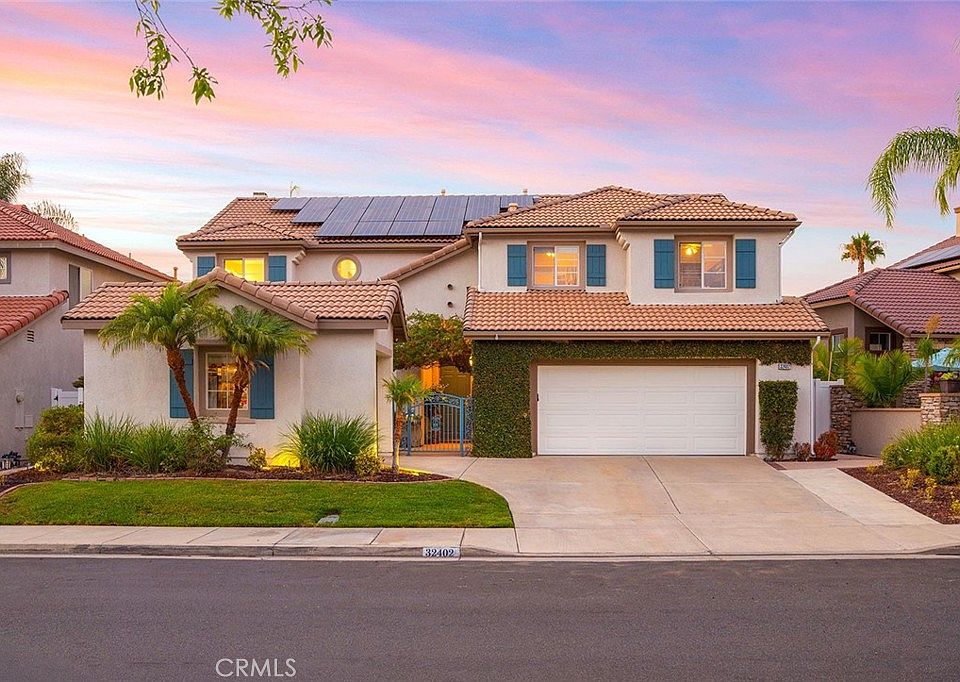 Located on a quiet cul-de-sac in the sought-after Paseo Del Sol community, this spacious 5-bedroom, 3-bathroom home offers 2,678± square feet of well-designed and upgraded living space in one of Temecula’s most desirable neighborhoods. Beyond the gorgeous street presence awaits a secluded entry courtyard, an inspiring retreat for morning coffee. Inside, the functional and open layout with 2-story ceilings in the living and dining areas creates an airy and inviting feel. The remodeled kitchen features updated finishes, modern appliances, and plenty of workspace, flowing seamlessly into the family room with a cozy fireplace. All bathrooms have been tastefully updated, and all five bedrooms offer generous space, including a luxurious master suite with a large walk-in closet, chic soaking tub, and spacious shower. The backyard is perfect for relaxing and entertaining, boasting lush lawns, mature tropical plantings, an outdoor dining area, and a great spot for a hot tub! A rare bonus is the detached 3rd car garage, with endless possibilities for storage, workspace/flex-space uses, while the included (paid-for) solar panels help keep energy costs down year-round. Ideally located close to Temecula’s best amenities, such as top-rated schools, parks, golf courses, wine country, shopping, dining, and more! As part of Paseo Del Sol, residents enjoy sprawling greenbelts, miles of walking paths, multiple swimming pools, tennis courts, basketball courts, and neighborhood parks. It’s a community designed for an active, convenient, and connected lifestyle.
