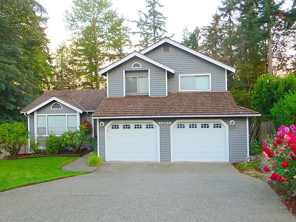 Hard to find large, end of cul-de-sac lot on greenbelt in desirable Westridge neighborhood surrounded by other quality homes. This second owner, tri level home features an updated kitchen with quartz counters, pull out shelves, generous pantry and breakfast nook. Vaulted ceilings throughout. Newer 50 year cedar shake roof and heat pump with AC. The large, fenced yard has an underground sprinkler system and sport court. Master en suite features updated tile and his and hers walk-in closets. Silver Lake Elementary and Alderbrook Park are right around the corner.