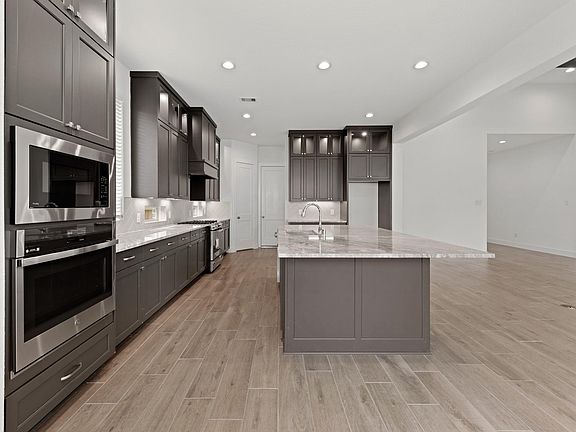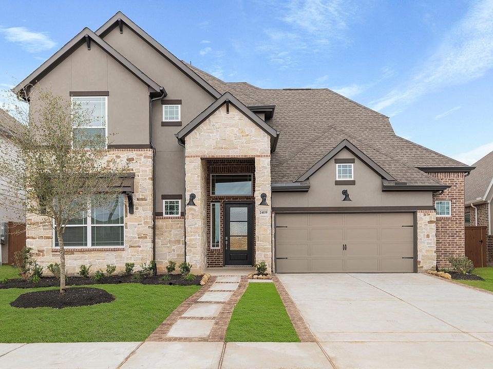 Chesmar Rivercrest Plan! 2 Story. 5 Bedrooms(2 dwn). 4 Bathrooms Game Rm. Priv Study &Opt Pocket Offc. 2-Car Epoxy Grg +Stg. 4 Sides Brk(1st Flr). Covd Rear Patio w/Spray Text, Gas Line +Ceiling Fan. Trinsic Blk Hdwr Pkg: Plumb Fixt; Dr &Bath Hrdwr; Shwr Frame. Crosby Black Lightg Pkg. 8' Int Drs(1st flr). Wood-Lk Tile Flrng +Upg Cpt &Pad. Quartz C-tops. Iron Spindles. Tile Shwr Surr. Fram Mirrs42" Wide Mahog Frt Dr w/Keypad. Wndw Blinds. C-Fans. Secur Sys. Full Sprklr Sys. Tnklss Wtr Htr. Full Gutt. Energy Star Appl w/16 SEER AC. Environ for Living "Diamond Level" Bldr. Energy Score: HERS =56. Wndstrm Rated(110 MPH). Near Rec. Cntr. No Rear Neigh. Neigh Elem School &Future Shopg Cntr.