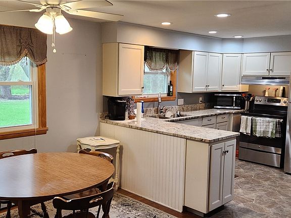 1332 Square foot Ranch with 3 bedrooms, 2 Full Baths, 24'X40" Barn/Shop and Wood Shed. Home has prior updates including Kitchen, Bath room's, Mechanics (Boiler & AC 10Yrs) and House roof (5Yrs). Secluded lot just outside village limits. Delay in Showing and Negotiations. Showing start date 5/1/2024 @9am. Negotiation's start date 5/8/2024