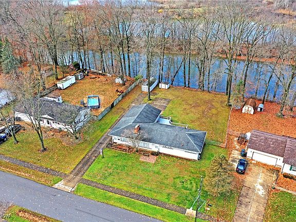 Enjoy scenic, riverside views and an incredible amount of move-in-ready living space as you make your way through this exceptional Warren ranch! This home is hotter than the Thanksgiving turkey, wowing with its expansive yard, partially fenced and offering a large rear deck for easy entertaining and relaxation alike. The outstretched driveway finds an ample turn around that neighbors both an outdoor shed and attached two-car garage parking. Through the front door, a sun washed living room enjoys hardwood flooring, and a brick lined fireplace set along the far wall, passing through into the remarkable family room. Whip up a tasty holiday meal in the galley style kitchen as casual dining space overlooks the deck entrance. Tiled flooring runs underfoot, leading into the rear family room where wood panel walls and a towering brick mantle are located. Opposite the kitchen, hardwood flooring leads into the trio of spacious bedrooms. They are met with a brightly lit and handsomely tiled full bath to complete the floor. Downstairs, rec space, a workshop area, and a bonus room also include a second full bath and laundry services.