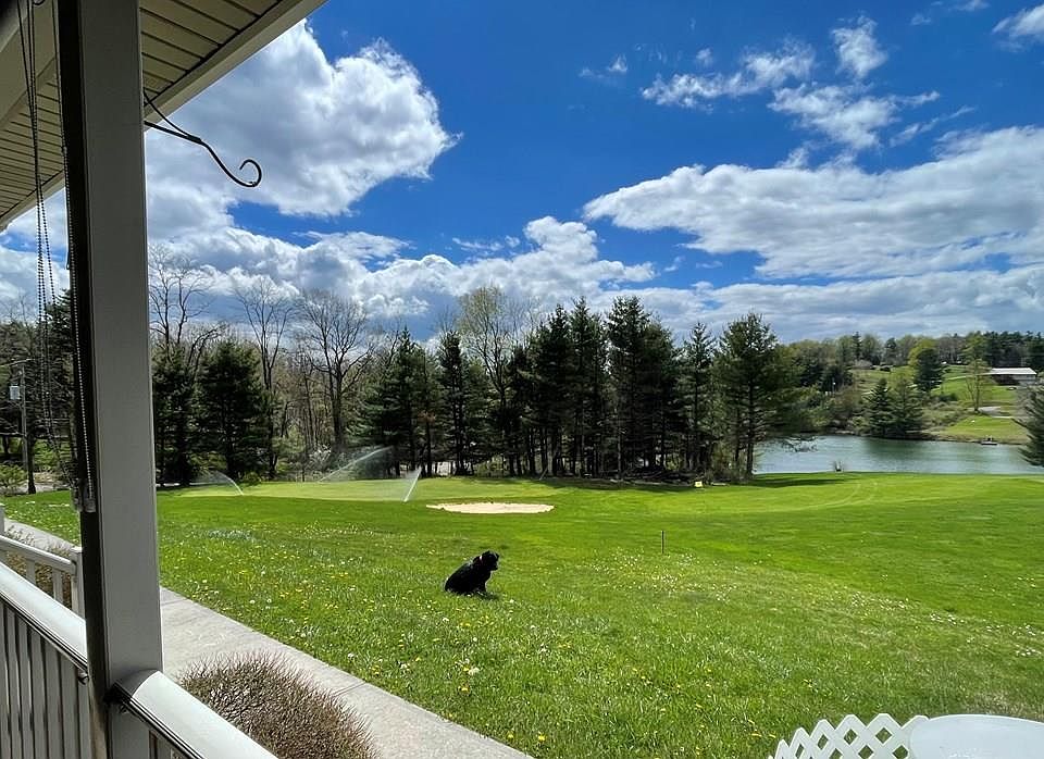 On the 18th hole overlooking a tranquil lake setting at Skyland Lakes Golf Course off the Blue Ridge Parkway. This pristine 2 bedroom, 1 bath townhome has 936 Sqft of living on one floor with 42 inch doorways and comes with all the furniture. The long entrance hallway opens into a large vaulted kitchen and great room with gas logs, and opens onto a covered porch with a beautiful view of the lake. The primary bedroom and 2nd bedroom are separated by a spacious bathroom that has a barn door closure, and a stackable washer and dryer. This townhome comes with a separate garage for your golf cart or extra storage. Skyland Lakes is minutes away Hwy 52 and I-77. Close to Mount Airy, Galax, Hillsville, and Floyd. Within an hour to Winston-Salem, NC. A perfect home or getaway for peaceful mountain and golf living!