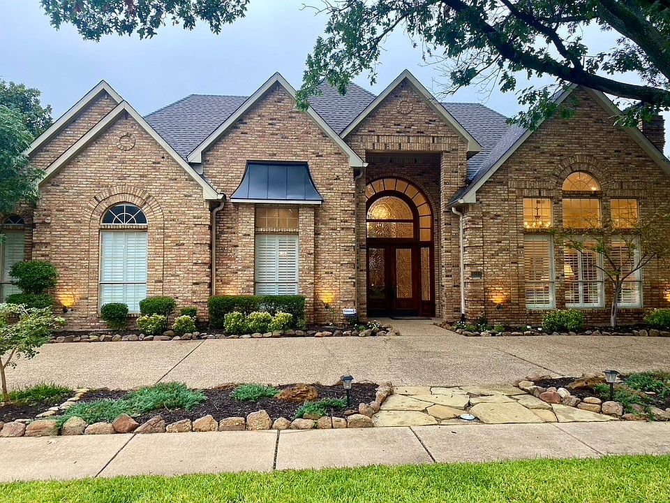 Expansive custom brick open concept home in the desirable voluntary HOA neighborhood of Whiffletree VII in Plano. This lovely home features multiple living areas, 5 bedrooms, swimming pool, built-in hot tub spa with wet bar, sauna and a movie theater. All primary living spaces and bedrooms are conveniently located on the first level. A beautiful front door surrounded by large leaded glass windows welcomes you to the foyer complete with soaring ceilings accented by custom crown moldings and a large floor to ceiling mirror. Travertine tile and decorative hardwood are strategically placed throughout the home. The large living rooms offer many options to suit one's imagination, and include decorative hanging and recessed lighting fixtures all dimmable to create the perfect setting. Each living room includes a large mantle gas fireplace that be can be wood burning again, if desired. Windows are covered by plantation shutters or blinds and all offer wonderful natural light to their respective spaces. The large kitchen is surrounded by gorgeous granite countertops complete with center island gas cooktop, walk-in pantry, wine cooler, double oven, microwave, dishwasher, multiple sensitive touch sinks, and tremendous cabinet storage space. The large master bedroom offers a perfect view of the pool and is accompanied by a large updated bathroom with his and her vanities, garden tub, luxury shower, and a large walk-in closet. The owners have made numerous other upgrades throughout the property including new tile and fixtures in all other bathrooms, three new HVAC systems, and a new roof. A list of all the upgrades to this home is available in the supplemental documents section of the listing. The home is a short walk from Prairie Meadow Park, Mathews Elementary School and Davis Library. Numerous grocery stores, gas stations, restaurants, banks and other service businesses are located within one mile. OWNER IS THE LISTING AGENT AND A TEXAS LICENSED REAL ESTATE AGENT.