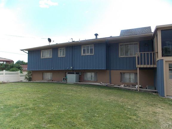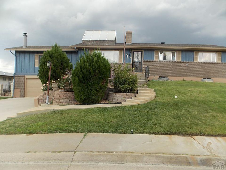Nice home in Northside Pueblo location. So many options including multi-generational and ADU. Upstairs includes three bedrooms, and two bathrooms. Primary bedroom has two closets including one walk in closet. Second bedroom is large with a small walk-in closet. Formal living room, dining room and kitchen are an open concept. Livingroom has a wood burning fireplace. Very large family room has a pellet stove and plenty of space to entertain with great views of the mountains. Just off the dining room is a 3 seasons covered porch. Downstairs is the laundry room that with a little modification could become a second kitchen for an ADU or bar for your game room. A large game room or second family room with a wood burning fireplace and garden level windows. Two bedrooms downstairs, one with garden level windows, bath and utility room with plenty of storage. An oversized two car garage, which has a workshop or storage area at front of garage, with access to the backyard. Large backyard with patio and shed. Home has hot air solar on the roof. Home can be lived in while you update to your personal style. Easy access to highway 50 and lots of restaurants and shopping, including major grocery store. Priced to sale. Must see to appreciate.