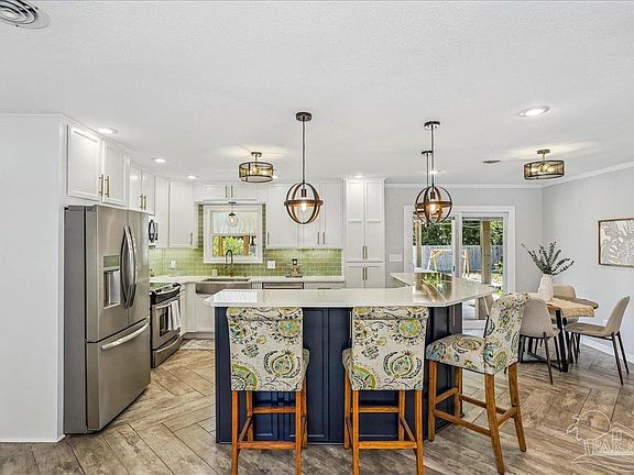 Welcome to a meticulously maintained home that perfectly blends modern comfort with inviting outdoor living. From the moment you arrive, the fresh landscaping, colorful flowers in the window troughs, new mulch, and freshly painted garage create stunning curb appeal. Professional exterior lighting illuminates the fence, front pathway, and gardens, all app-controlled with customizable colors to set the mood. Inside, this smart home is newly integrated with some Alexa features—control the thermostat, under cabinet lighting, and more with just your voice or remote controls. Recent upgrades include 2021 roof, brand-new whole-house insulation (Feb 2025) and updated ductwork (2017) for efficiency and comfort. The kitchen is a chef’s dream, featuring newer appliances with a transferrable warranty, a pot filler above the stove, power to the island, and abundant storage. Outside is your private piece of paradise, designed for entertaining and relaxation. Garden beds are ready for fresh vegetables, while string lights and an oversized fire pit invite cozy gatherings. The expansive covered deck, built in 2022 with a new gutter system, includes TV hookups and a refreshing misting system—ideal for summer evenings. Every detail of this property has been thoughtfully cared for and upgraded, making it fully move-in ready. Don’t miss the chance to own a home that offers both everyday convenience and the ultimate outdoor lifestyle in the heart of Pensacola.