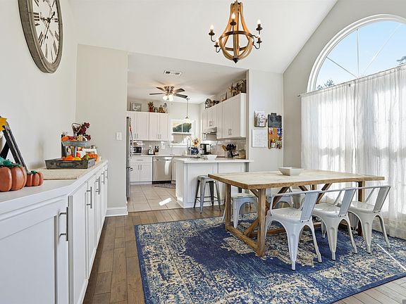 Welcome to this beautifully updated 3 bed, 2 bath home offering 1,415 sq. ft. of well-designed living space. With wood and ceramic tile flooring throughout, there’s no carpet to worry about—just clean, easy upkeep. The open-concept living area features a cozy wood-burning/gas fireplace with a custom cypress mantle, flanked by built-in bookcases. Canned LED lighting and a ceiling fan complete the inviting space. The kitchen boasts granite countertops, a decorative subway tile backsplash, corner sink, stainless steel appliances, and an electric range/oven. Adjacent is a bright dining area with a charming bay window, added buffet, vaulted ceiling, and wood floors. The spacious primary suite includes wood flooring, a walk-in closet with custom built-ins and lighting, and a beautifully updated en suite bath with double granite vanities, garden soaker tub, separate shower, and ceramic tile floors. Two additional bedrooms share a full hall bath. A standout feature is the converted carport utility room—now a private office with a custom butcher block desk and Ethernet connectivity. Additional improvements include: full interior repaint, new LED lighting throughout, upgraded closet shelving, under-cabinet kitchen lighting, replaced water heater (2017), HVAC coil (2022), condenser (2015), and all new windows except for the living room doors. Enjoy outdoor living with an open patio and a 10x20 storage shed in the backyard. Located in a desirable area and offered at a great price—schedule your private showing today!