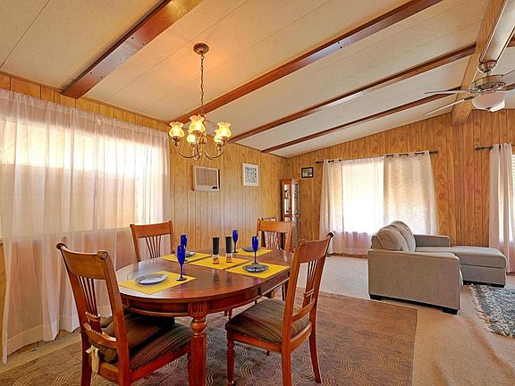 You own the land, Golf Course Community, of Tri Palms Estates, FHA Lending on a (433a), Permanent Foundation, This one at this price is hard to find, you have a sun room or office in addition to the 2 bedrooms so could be a 3rd bedroom guest area, your choice. A/C and Mini Splits for energy savings, White kitchen, nice countertops well maintained home, washer and dryer stay in laundry room, and free golf to two owners 18 hole, come see this great community close access to Dining and Shopping and 10 Fwy to visit Palm Springs, Acrisure Arena, off Varner see your concerts 5 minutes from home.
