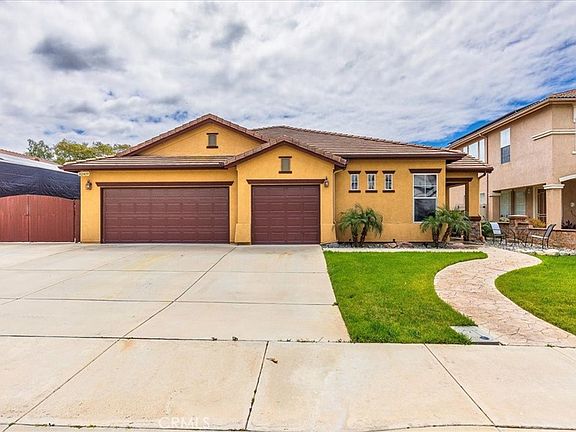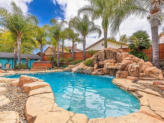 AMAZING SINGLE LEVEL POOL HOME!!! 2733 Sq. Ft. 4 bedrooms + primary suite retreat. 3 full baths. Very private, large 9583 Sq. Ft. lot. RV PARKING THAT WILL ACCOMMODATE THE LARGEST RV PLUS YOUR TOYS! Located in a quiet, friendly cul-de-sac. Front entry is open to living room. Formal dining room/bonus room off of entry. One bedroom with full bath is located at the front of the home. Perfect for multi-gen family. Beautiful kitchen with Granite counter tops, pantry and breakfast bar. Kitchen opens to family room and dining area. Very large primary suite with adjoining retreat features sliding door leading out to back yard and view of the pool. Primary bath features dual basins, separate jetted tub and shower and huge walk in closet. Large family room with fireplace will accommodate a huge seating arrangement. Perfect home for entertaining large groups of family and friends. Indoor laundry room with multiple cabinets and built in sink. Three car attached garage. Large low maintenance back yard with STUNNING SOLAR HEATED POOL WITH SLIDE AND WATERFALL. Enjoy soothing above ground hot tub. Relax in your spacious Alumawood covered patio. Outdoor BBQ island included. TOP RATED TEMECULA SCHOOL DISTRICT. LOW TAX RATE!! NO HOA! Walk to neighborhood parks and French Valley Elementary School. Minutes to freeway access, Promenade Mall, Lake Skinner, numerous golf courses, resorts, dining and the famous Temecula Wine Country. Simply put, you've found the perfect home!