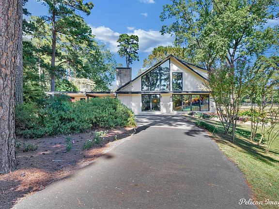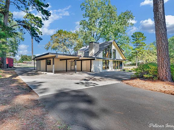 Discover a one-of-a-kind peaceful property nestled in the heart of Shreveport. Situated on an expansive 0.72-acre lot, this distinct residence boasts architectural flair with its stunning glass-walled chalet design and modified A-frame structure. With 18’ to 24’ soaring ceilings and striking wood beams, this home melds architectural intrigue while offering a perfect blend of style and substance. Inside, the home features four bedrooms and two and a half baths. The expansive living area, dominated by the towering ceilings, provides an impressive space for relaxing or entertaining. A suspended balcony, accessed by a sleek metal spiral staircase, adds a touch of grandeur and offers a vantage point to appreciate the home's unique design. The kitchen creates a seamless flow for dining and gatherings. The exterior is equally impressive, featuring a lush landscape with ample privacy, set back from the road for an exclusive feel. Its circular driveway ensures easy access and convenience. A two-car carport that provides room for your vehicles, while two additional storage buildings offer flexibility for all your storage needs. The lot opens up to enchanting views of the surrounding open pasture, allowing you to enjoy serene vistas right from your backyard. This extraordinary property perfectly balances tranquility while offering a rare opportunity to own a home that commands attention and inspires. Experience elevated living like never before in this standout Shreveport property.