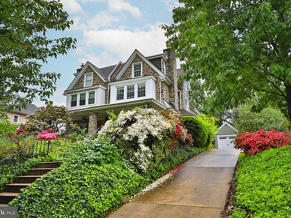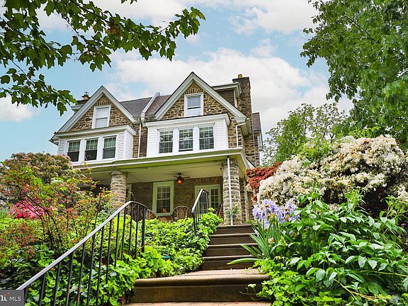 Today’s buyers will find it hard to resist the incredible charm and appeal of this sunny, stately and spacious five bedroom, 2.5 bath stone East Falls twin located on leafy Midvale Ave just across from McMichael Park with its sprawling green and restful sitting areas. The home is nicely updated and shows beautifully. Exposed wood floors predominate throughout with the graceful main staircase continuing to the third floor. The living and dining rooms are a delight. The brick fireplace with its pretty mantel is the focal point of the living room with petite leaded glass windows on either side. French doors open to the airy front porch overlooking the lawn, lush gardens and affording views across to the park. The dining room is flooded with light. Note the chair rail and built in china closet. The pretty eat-in kitchen offers ceiling height cabinets, granite counters and window sills, cork floor, double stainless sinks, new stainless dishwasher and stove. Back stairs connect the kitchen to the bedrooms upstairs. The kitchen opens directly to a lovely, very private back patio with border shrubs and plantings, rustic retaining wall and fencing. Upstairs one room is prettier than the next. Two of the bedrooms serve as charming offices and the smallest bedroom is used as a closet/ dressing room. The third floor encompasses the main bedroom suite with an updated bathroom while the sunny 2nd floor front bedroom is the home’s largest. There is a fun, finished rec room in the basement and a detached one car garage with a new door and opener. The hot water heater is recent and there is new basement lighting. The roof is brand new as of March 2024 and comes with a 25 year warranty. So conveniently located, 3242 Midvale is within walking distance of two commuter train lines, bus stops, area educational institutions such as Jefferson U, the Mifflin School, Penn Charter as well as the popular shops and restaurants of East Falls. Center City is 15 minutes away. Do not miss this gem!