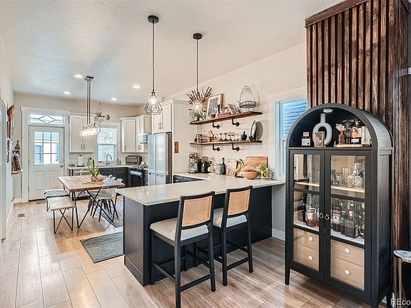This exceptionally remodeled three-bedroom, two-bathroom historic bungalow is situated in the vibrant heart of Cole. The home has undergone a meticulous transformation, reimagined for the most discerning buyer. Every aspect of the interior and exterior has been meticulously crafted to enhance the living experience. The welcoming front porch offers panoramic views of the surrounding mountains. As you enter the home, the spacious main living area features exposed brick walls, wood floors, a gas fireplace with a marble surround, and soaring ten-foot ceilings. The gourmet kitchen boasts ample storage, custom open shelving, a large peninsula, stainless steel appliances, including a gas stove and quartz countertops. The main floor includes two bedrooms, one with a walk-in closet, laundry and a full bathroom. The upstairs primary suite offers views of downtown, two generously sized closet spaces, and an oversized bathroom with a rainfall shower and a separate water closet. The backyard is an entertainer’s paradise, featuring a large concrete fire pit with wraparound seating, an outdoor dining space with a pergola, yard, drip irrigation for all landscaping, and access to the (20’x24’) two-car garage. All renovations and improvements to this 1896 bungalow have been approved and inspected. The home’s location in the heart of Cole provides convenient access to I-70, RiNo and downtown.