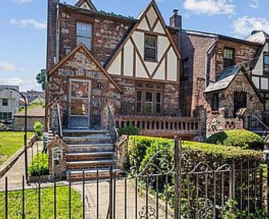 This beautiful, architecturally distinct, Tudor-style home is ready for the complete reimagination of your dreams. With ample windows and gorgeous natural light from all four exposures, the main floor features a large living room, powder room, and a sizable dining room with arched entrances and original built-ins. The eat in kitchen leads to a bonus extension at the rear of the home that would make a great home office or playroom, which opens directly into your private and tranquil rear yard oasis. The second floor includes a primary bedroom with en-suite bathroom, two additional bedrooms, and one full bath. The open concept attic level can be used as a large fourth bedroom or a great family room or recreation space. The basement consists of three finished rooms, a garage, and laundry room. Low taxes and close proximity to the #1 train, shopping, restaurants, and multiple neighborhood parks; this is your chance to own a charming, all-brick home with plenty of parking, in the big apple!