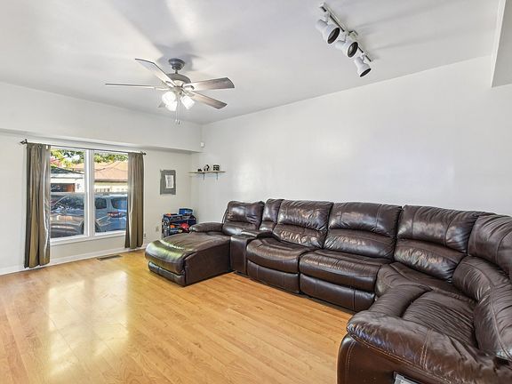 Welcome to your perfect starter home, ideally situated on a uniquely large 30' x 169' lot in the desirable Mount Greenwood neighborhood. Located directly across from the Stonebrook Shopping Center, this charming residence combines convenience with comfort. Featuring two spacious bedrooms and two full, updated bathrooms, making it an excellent choice for families or first-time buyers. As you enter, you'll appreciate the warm ambiance created by the beautiful wood laminate flooring that flows throughout the home. The eat-in kitchen is a standout, equipped with stainless steel appliances, Corian countertops, and a large pantry closet, all thoughtfully updated in 2021. Adjacent to the kitchen, the separate dining room leads into a generously sized family room addition, providing a wonderful space for gatherings and celebrations. Recent upgrades totaling over $30,000 ensure peace of mind, including a new roof on both the house and garage installed in 2021, and new vinyl siding on the house and garage completed in 2022. Additionally, a new hot water tank was installed in 2021.Step outside to your private patio, where you can enjoy cool evenings around the firepit, and let your pets roam freely in the designated dog run. The property also includes a spacious 2-car garage with a party door, perfect for entertaining and easy access. With nothing left to do but move in, this clean and cozy family home is waiting for you. Don't miss your chance to call this lovely space your own in a vibrant, welcoming community. For more information or to schedule a viewing, please contact us today.