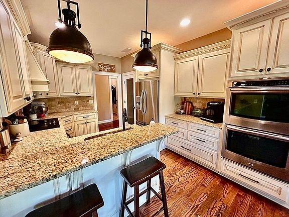 Step inside to find hardwood and tile flooring throughout, a cozy gas fireplace in the living area, and a thoughtful layout that includes an office, large bonus room, formal dining room, and a bright eat-in kitchen featuring a bar, double oven, and walk-in pantry—perfect for cooking and entertaining.