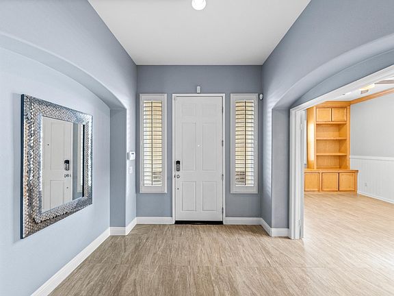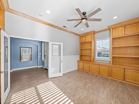 Entering the house, you'll have a large office with plenty of custom-built shelving. Next, you'll see a spacious formal living and dining room. Across the hallway, you have 3 spacious bedrooms with a full bath and a half bath. There, you'll find the laundry room with entry to the large two-car garage recently upgraded with epoxy flooring and professionally installed cabinetry with plenty of storage space.