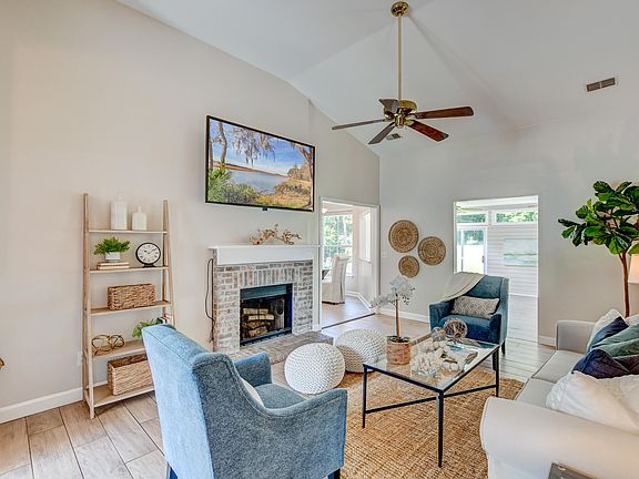 Welcome to this charming one-story home nestled on a beautifully landscaped cul-de-sac lot. Upon entering this updated home, you'll step into a spacious living room with vaulted ceiling and wood-burning fireplace, creating a warm and inviting atmosphere. Next to the living room, you'll discover a well-appointed kitchen boasting granite countertops, a convenient island, and ample space for dining. The kitchen is thoughtfully designed, making meal preparation a breeze. Connected to the living room, you'll find a delightful sunroom, flooded with natural light and a pond view. Step outside to the private, fenced-in backyard with a patio perfect for alfresco dinners and gatherings near the tranquil pond stocked with fish.Back inside, the owner's retreat with in-suit bath is a relaxing haven. Additional, there are two more generously sized bedrooms and another bathroom, ensuring ample space for family or guests. There is also a convenient laundry room. The two-car garage provides extra storage space and space and ample parking. The community amenities further enhance the appeal of this home, as residents have access to a neighborhood pool and playground. Whether you want to take a refreshing dip on hot summer days or enjoy some outdoor recreation, these facilities are perfect for all ages. This property is ideally located .8 miles from Drayton Hall School, 1.9 miles from Lowes Food & restaurant, 4.8 miles from West Ashley Highschool, 6.1 miles from Publix Super Market and 10.7 miles from Charleston International Airport. Don't miss this incredible opportunity to own a beautiful home with a pond view, a stunning backyard, and access to fantastic community amenities. It's time to make your dreams a reality and embrace the comfort and luxury this updated home has to offer.