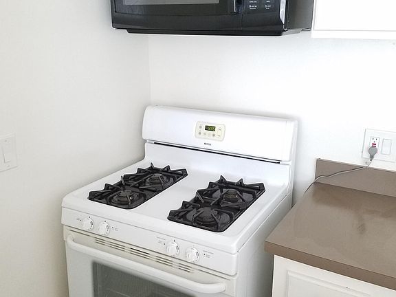 No Pets. Convenient location. Open floor plan. Semi-private front patio with picnic table and benches. Modern kitchen with built-in microwave oven. Includes refrigerator and gas stove/oven. Street parking. Please don't call after 8pm. Photos are of a similar unit, not this exact one. Owner pays water. Resident pays all other utilities.