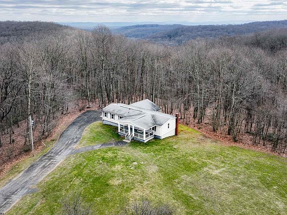 Looking to be close to town but still private?! This 1 level home is situated on over 5+ acres with no restrictions and located just 6 minutes from I-68. The home features a 2-story living room with beamed cathedral ceiling, built-ins, and fireplace. Spacious kitchen with tons of counter space and a large eat-in dining area. The primary bedroom features a new updated en suite bath with gorgeous tiled shower and double bowl sinks. The basement area is completely open for all your entertaining needs and also has another bedroom and half bath. Looking for a garage or workshop? The oversized garage provides a ton of storage. Come see this home before it's gone!