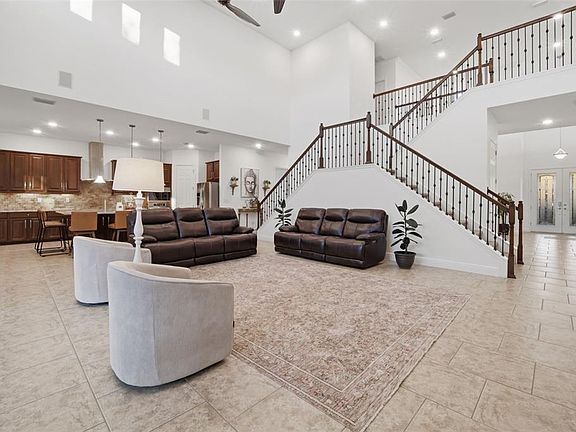 One or more photo(s) has been virtually staged. Experience Luxury Florida living at its finest in this stunning Gasparilla model by Westbay, located in the highly coveted gated community of Watermark at Seven Oaks. Perfectly positioned on an oversized corner lot, this 5-bedroom, 4.5-bathroom Pool home with a 3-car garage offers the perfect blend of elegance, comfort, and resort-style living. Step inside and be greeted by 23-foot soaring ceilings, natural light streaming through every corner, and an open, airy layout designed for both everyday living and unforgettable entertaining. The grand staircase serves as a true architectural centerpiece, seamlessly connecting the main and upper levels. The gourmet kitchen features an expansive Island with seating, premium appliances, and a view that overlooks the spacious family room, ideal for hosting gatherings or enjoying casual morning coffee. The primary suite and an additional bedroom (currently used as an office) are conveniently located on the first floor. Primary suite offers a luxirious spa-like bathroom with dual vanities, a separate tub and large shower, and a walk-in closet complete with closet organizers. Upstairs, you’ll find a cozy bonus room with double doors, perfect for movie nights or a private retreat along with three additional bedrooms and two beautifully updated bathrooms, each featuring custom tiled walk-in showers. Step outside to your private outdoor oasis, previously featured in Florida Home Magazine! The saltwater pool and spa area is pure paradise, complete with two outdoor gas fireplaces, an extended summer kitchen with a ceramic and infrared grill, sink, and mini-fridge, and a screened lanai that makes entertaining effortless year-round. Additional highlights include: New roof (Feb 2025), Generac whole-home generator, Smart home features: Wi-Fi-enabled locks, Nest thermostats, sprinkler system, and security cameras, surround sound system and outdoor ceiling speakers, Updated rear drainage system and mini-golf area for extra fun. Residents of Seven Oaks enjoy access to world-class amenities, resort pools, tennis courts, playgrounds, walking trails, and a clubhouse with a fitness center and theater room. Ideally situated near top-rated schools, shopping, dining, and just minutes from I-75 for an easy commute to Tampa and the Gulf beaches. This is more than just a home; it’s the lifestyle you’ve been dreaming of. Schedule your private tour today and experience luxury living in Wesley Chapel’s premier community.