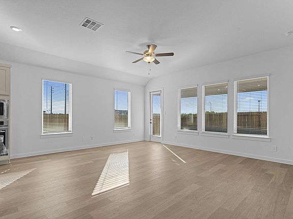 NO BACK NEIGHBOR - The LORENZO by D.R Horton! This stunning one-story home spans 2,068 sq. ft. with 10' ceilings, featuring 4 bedrooms, 3 baths, and 2 car garage. Enjoy the gourmet kitchen with granite counter tops, built-in stainless-steel appliances, beautiful 42" cabinets. This open concept floorplan with kitchen overlooking the breakfast room and family room makes it perfect for entertaining. The primary suite features an inviting primary bath with separate tub and oversized mud set shower, and a large walk-in closet. Full LVP flooring, no carpet! Relax spending time on the large, covered patio overlooking a fully sodded yard with a full irrigation system. Smart Home Automation and Energy Efficient features included! Located in the highly desired PEARLAND ISD, homeowners enjoy easy access to amenities, shopping, dining, medical facilities, major highways, and the awesome community park just across the street! Not in a flood zone