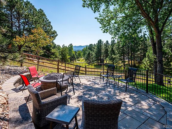 **Location, Location!** Hiwan sits at the heart of central Evergreen, just minutes from the renowned Hiwan Country Club and I-70 for easy access to Denver and mountain adventures. This home is tucked among trees, backing to open space with a seasonal stream that attracts elk and other wildlife. Whether relaxing on the upper deck or unwinding on the private patio, you’ll enjoy nature’s beauty from your own backyard with serene views of the mountains across the valley. Inside, the open, vaulted living room welcomes you with gleaming hardwood floors, abundant natural light, and a dramatic rock fireplace. The adjoining great room flows seamlessly into the dining area—perfect for both intimate dinners and large gatherings—with access to the upper deck for additional outdoor enjoyment. The kitchen is thoughtfully designed for both efficiency and entertaining, featuring custom granite countertops that echo the mountain setting. A versatile sitting area off the kitchen opens directly to the patio, offering options for a cozy office, play area, or creative flex space. Up a few steps from the main living area, the primary suite provides a peaceful retreat w a five-piece bath complete with towel warmer. Two additional bedrooms with new carpet complete this level. The lower level includes a spacious family room with another fireplace, walkout access to the patio, and a large fourth bedroom with its own bath. Additional highlights include four attic fans for cooling during summer, a three-car garage, paved driveway, and low-maintenance natural landscaping. This pristine Hiwan home combines comfort, versatility, and a true mountain lifestyle. FLOOR PLANS ARE IN THE DOCUMENTS IN THE MLS