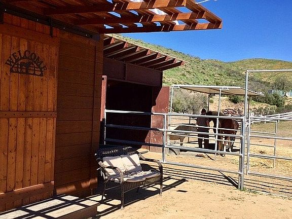 Crest View property with 5 Acres, Horse facilities - pasture and 9 horse stables. The property is on the west side of Agua Dulce close to Santa Clarita. The house has 3 bedrooms , 2 bathrooms , large living room & dining room combo. There is great views from patio at the back of the house. Lots of land close to town.