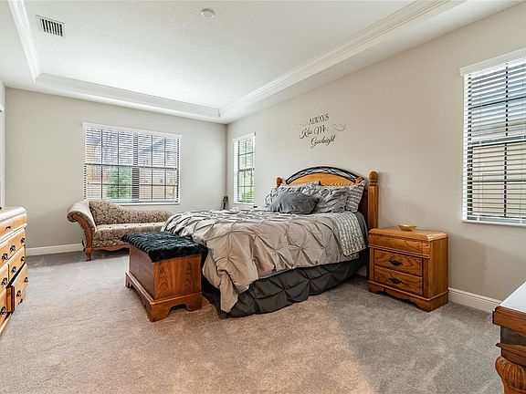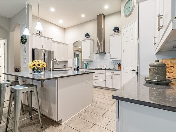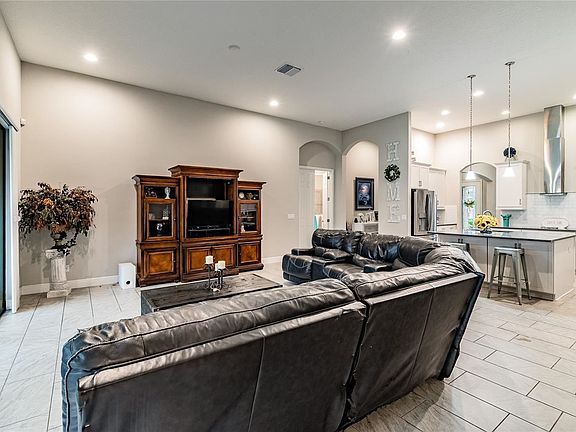 Beautiful one story home with the well sought after Key Largo floor plan!! With soaring 12' ceilings, an oversized grand room and an open kitchen this home really fits any lifestyle. You will love the plank tile flooring, upgraded Quartz kitchen countertops and 42" upgraded kitchen cabinets with crown molding. The spacious primary suite is full of natural light with two walk in closets and the primary bath offering granite countertops, walk in shower and dual vanities. There is a large bonus room that leads out to the completely fenced back yard..perfect for entertaining!! This home is situated on an extended lot where there's plenty of extra space to create your own backyard oasis. The community is located in Wesley Chapel with many amenities including pools, splash pad, clubhouse, walking trails, dog parks, fitness center plus much more...You are also just a short drive to all of the great shopping and dining that the area has to offer.