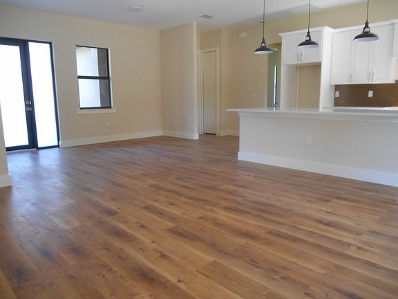 Brand new house, with wood vinyl floor throughout, new appliances installed after pictures, two car garage, lanai, den, set back in a secluded area, and a paved driveway. Elementary school just down the road and shopping too.