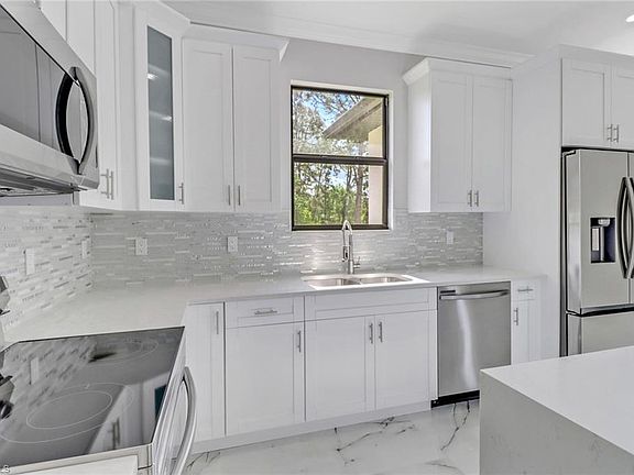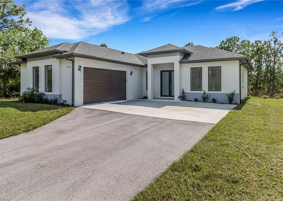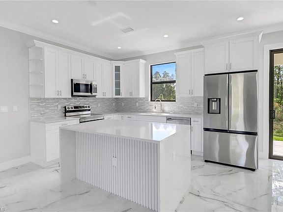 HOME IS READY TO MOVE IN NOW!! ** Great news! Introducing a stunning newly built home on a generous 2.27-acre lot. This remarkable property showcases exceptional craftsmanship, featuring a smart open-concept design and a range of upgrades to suit your modern lifestyle. Enter into a world of elegance with a spacious kitchen, equipped with sleek quartz countertops, a beautiful waterfall island, high-end stainless steel appliances, a built-in microwave, and stylish 42" wooden cabinetry. The light-filled living room is enhanced by gorgeous 24” x 48” porcelain tile flooring that flows seamlessly throughout the home, paired with impressive tray ceilings. Appreciate the finer touches like crown molding in the main living area and master suite, 8" baseboards throughout, and 8-ft doors. Additional highlights include an automated sprinkler system, all-impact windows and doors, an asphalt driveway, and ample space for easy access between the side of the house and the backyard. Located in the peaceful Golden Gate Estates, this home offers a serene rural setting while still being close to major roads. You'll enjoy the convenience of nearby Publix, schools, and shopping, just a short drive away. With NO HOA fees, you can enjoy all the benefits of homeownership without any added restrictions. Don’t miss the chance to make this move-in-ready gem yours today!