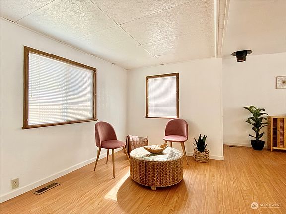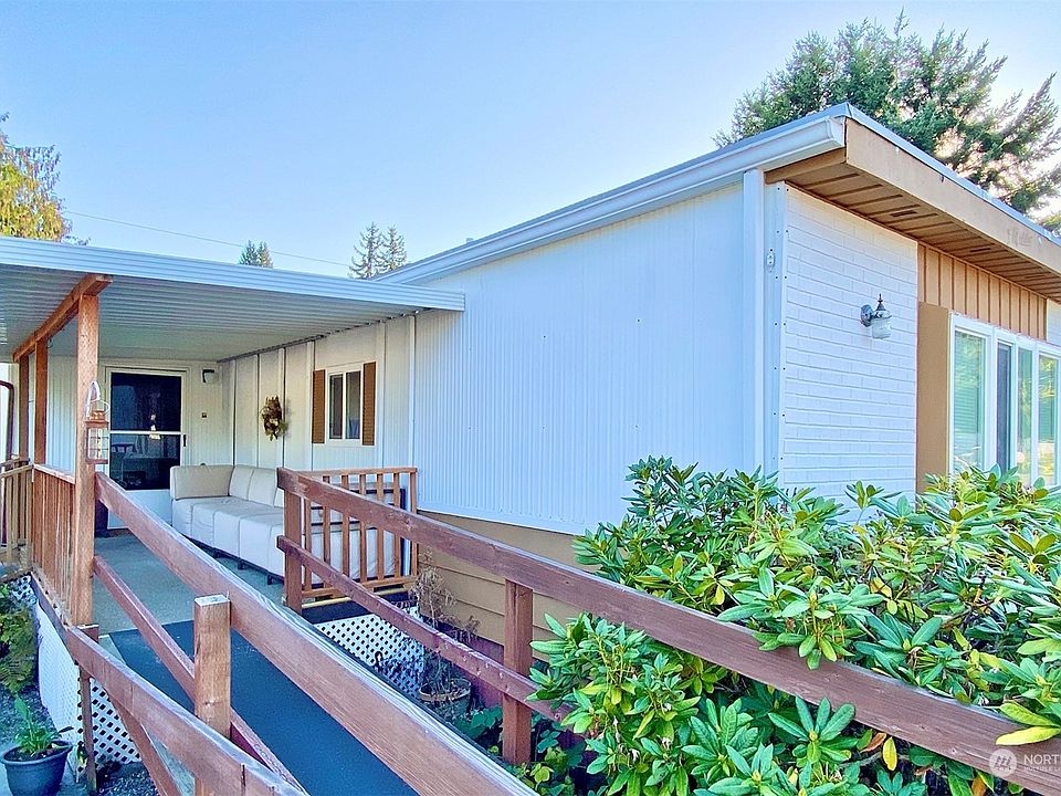Ready for occupancy, this 924 +/- sf home with 2 bedrooms and 2 bathrooms, awaits in the 55+ Laurel Park community. Featuring a split bedroom floor plan, the addition of a bump-out creates an expansive open-concept living space. The kitchen is equipped with a newer range/hood, while uniform laminate flooring makes for easy maintenance throughout. A recent roof replacement adds to the home's appeal. Outside, a spacious front porch invites relaxation, complemented by an outdoor couch. A single-stall carport provides parking convenience, and ample outdoor storage space completes the package. Situated conveniently close to both Tumwater and Olympia amenities, this property offers an ideal location for comfortable living.