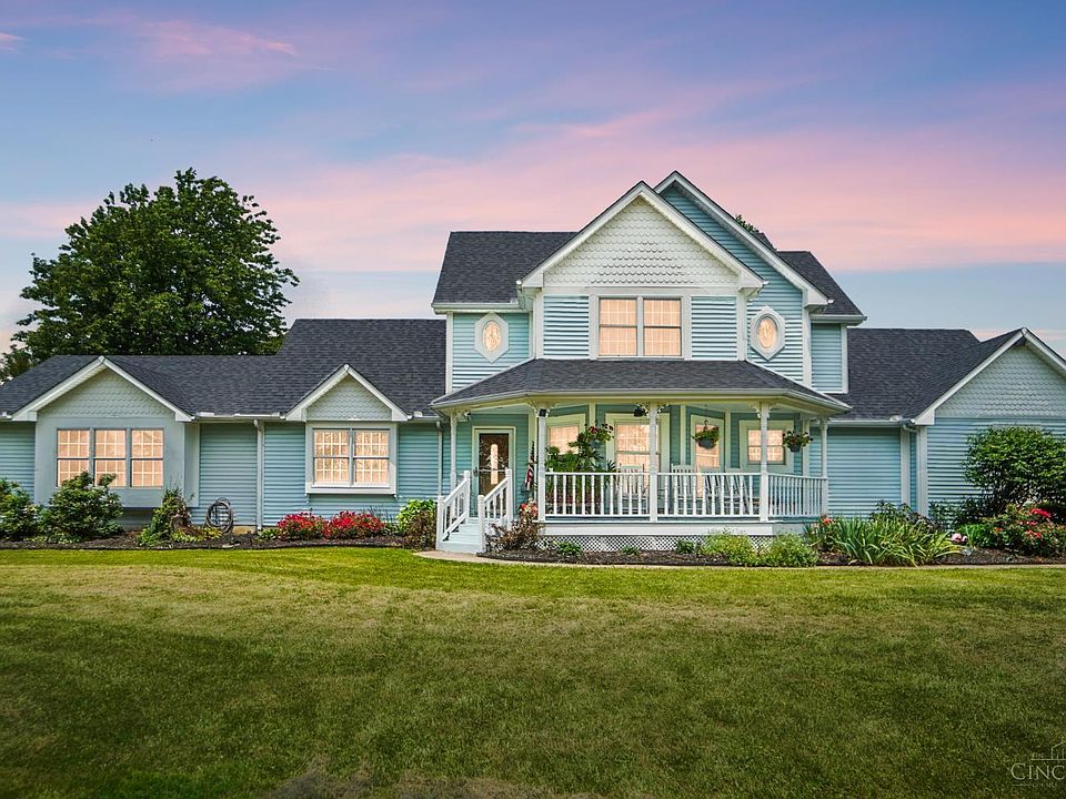 Enjoy peaceful country living in this stunning 4-bdrm, 3.5-bath Victorian situated on 4.93 level acres-4 acres fully fenced with a 6-foot fence. The outdoor oasis features an 8.5-ft deep saltwater inground pool, firepit, Trex deck w/pergola & patioperfect for entertaining or relaxing under the stars. Car enthusiasts or hobbyists will love the 25'x44' outbuilding w/2nd floor, 2-car attached garage & oversized driveway. Inside, you'll find timeless charm & modern conveniences including natural woodwork, hrdwd & laminate flrs, granite countertops, vaulted ceilings & gas fireplace. The1st-floor primary suite offers an adjoining bath & walk-out access, while the finished LL includes a rec room & a flex space. Additional highlights: study, 4-seasons room off the kitchen w/ backyard access, geo-thermal heating, whole house generator, sump pump, radon system & 1st-floor laundry. Located with convenient access to both Cincinnati & Dayton, this is the perfect blend of comfort, space, & serenity