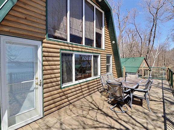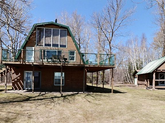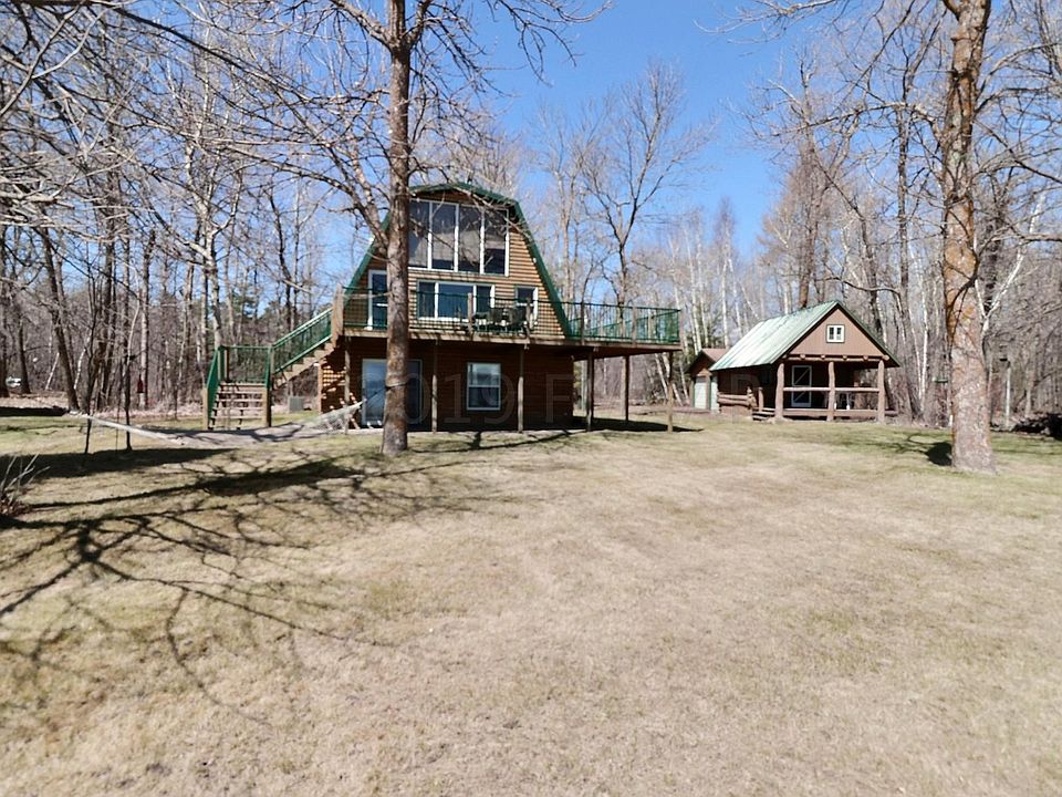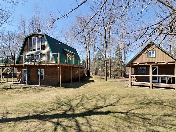 This home is a must see with 180 ft of frontage on Round Lake. You'll love spending time at this home with level lot and tons of privacy! The home features a master suite on the main level along with a comfortable family room & a bar. Upstairs features a gorgeous wrap around porch, huge windows with a beautiful view and a fireplace to cozy up to on chilly nights. With extra space in the loft, a separate guest cabin & outdoor shower there is plenty of room for entertaining. You will love all the storage on the property as well! With the new central air, furnace, water softener & hot water heater this home is move in ready. Come & see this beautiful lake home today!