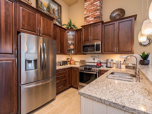 Shiplap and brick accentsGourmet kitchenGas rangePot fillerHeated tile floorsHeated mirrorsEnclosed solarium