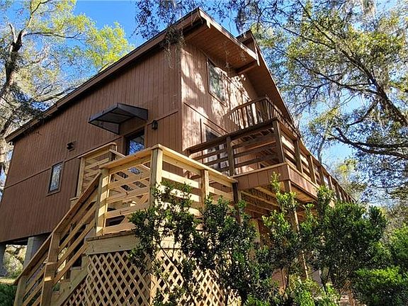 PRICE IMPROVED AS WELL AS A REFRESHED EXTERIOR-WOOD & PAINT. HAVE YOU EVER WANTED TO LIVE IN THE COUNTRY? HOW ABOUT ON A RIVER? WELL HERE IS YOUR CHANCE FOR BOTH. THIS IS COUNTRY LIVING AT ITS BEST! THIS BEAUTIFUL STILT HOME WELCOMES THE NATURE ENTHUSIAST AND OFFERS 4 BEDROOMS AND 2 FULL BATHROOMS ON A SECLUDED .70 OF AN ACRE LOT. THE VIEWS ARE PEACEFUL AND SERENE FROM THE SECOND AND THIRD FLOOR DECKS OF THE WITHLACOOCHEE RIVER. THIS TIMELESS TREASURE IS A REAL FIND. THIS RIVERSIDE RETREAT WELCOMES YOU WITH THE INVITING ENTRANCE DOOR AS YOU WALK ON THE BEAUTIFUL HARDWOOD FLOORS INTO THE OPEN GREAT ROOM OF THE HOME. ENTERING THE KITCHEN, YOU WILL THEN NOTICE THE RARELY USED APPLIANCES AS WELL AS A LARGE PANTRY/LAUNDRY/UTILITY ROOM DIRECTLY OFF OF THE KITCHEN. THIS HOME BOASTS A MASTER BEDROOM AND BATHROOM WITH A SITTING ROOM ON THE SECOND FLOOR AND THREE BEDROOMS AND A BATHROOM UPSTAIRS FOR GUESTS. VAULTED CEILINGS AND HIGH WINDOWS REFLECT AN ABUNDANCE OF NATURAL LIGHT UPSTAIRS. FRENCH DOORS AND A DECK OFF OF ONE OF THE BEDROOMS ON THE THIRD FLOOR OFFERS YOU A REFRESHING DOSE OF NATURE AS SOON AS YOU WAKE UP IN THE MORNING. STORAGE GALORE FOR UNDER THE HOME IS A TWO-SIDED WORKSHOP. THERE ARE ALSO TWO CARPORTS UNDERNEATH THE HOME AS WELL, ONE ON EITHER SIDE. YOU CAN FISH, KAYAK OR CANOE FROM YOUR OWN BACKYARD. WOW- WHAT A LIFESTYLE THAT AWAITS YOU IN THIS RIVERFRONT GETAWAY. CALL TO VIEW THIS COUNTRY RIVERSIDE RETREAT TODAY....BEFORE IT'S GONE!