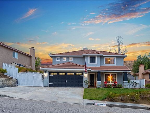 RV Access ! No HOA!! No Mello Roos!!! Welcome to this stunning two-story pool home located in the popular Double C Ranch neighborhood of Castaic CA. The original owners have maintained this property to perfection ! Nestled on a spacious 10,172 sq.ft lot, this rare beauty has been tastefully upgraded throughout. With a dash of warmth & a touch of refined elegance, this incredible home is perfect for any large family. Its open flowing floorplan features: wood-like laminate flooring, custom paint throughout, recessed lighting, huge open kitchen w/granite counter-top center island, walk-in pantry, downstairs powder room, open-formal living room & family room, large dining area, 2 fireplaces (living room & master bedroom), spacious master suite w/huge walk-in closet, private master bath w/his & her sinks, soaking spa tub upstairs office-loft nook, spacious guest bedrooms, lovely guest bathrooms, custom window treatments, Dual zoned AC units, whole house fan, and so much more. The exterior grounds are truly an entertainers delight and will make you feel like you are on vacation all year long. Featuring outdoor surround sound, tropical low-maintenance landscaping, an updated drip system, sparkling pool & spa w/waterfall & waterslide, new artificial turf grass, huge chicken coop, dog run area, & RV Access. The spacious 2-car garage is also has the potential for a tandem 3rd vehicle w/built in cabinets & island for storage galore. This home is an absolute must see !!!