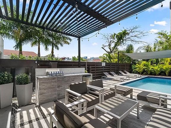 Discover modern luxury in this stunning furnished 4-bed, 4-bath townhome inCoral Way, a vibrant neighborhood experiencing exciting new developments, including an influx of upscale townhomes. Built in 2021, this 2,600 sq. ft. residence blends contemporary design with high-end finishes. Features include an open living space, a chef's kitchen boasting stainless steel appliances, quartz countertops, and warm oak cabinetry. En-suite bathrooms accompany each bedroom. Enjoy two private balconies and a backyard retreat with a heated/chilled pool, pergola, built-in barbecue. Prime location offers unparalleled convenience to Miracle Mile, Coral Gables, Coconut Grove, Brickell, and Downtown Miami, positioning you at the heart of it all.