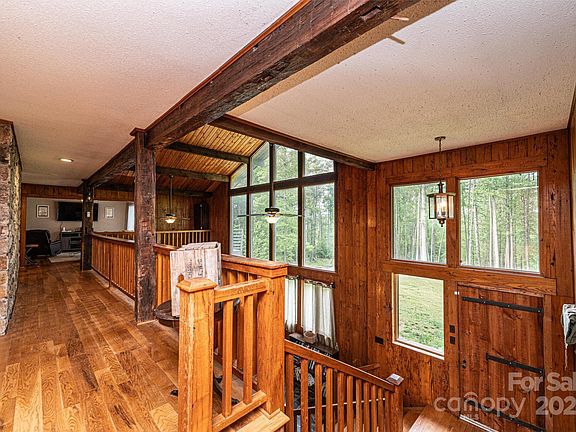 Custom Built Rustic beauty home where the country drive leads to a unique sanctuary of privacy on 8.8 acres! The lower level boasts a massive family room flooded w/natural light through a wall of windows & a log vaulted ceiling, slate floors, rock FP w/remote control gas logs, a mini kitchen/bar area, spacious bedroom, bonus room, full bath & w/ workshop/garage. The upper level grants farmhouse kitchen w/a gas cooktop, dbl oven, new butcher block counters & farm sink, a Butler's pantry, laundry room, & entry from a double garage into the mudroom w/ built-ins & guest bath, an open dining area, den, primary w/en-suite, another bedroom w/WIC share en-suite bath. Entertain outside on a partially covered deck w/TV, or enjoy the privacy deck off the primary en-suite! Cozy, Wormy Chestnut walls give this home a one-of-a-kind mountain heritage feel! (Historical info of home in assos docs) Mature landscaping, 18x20 barn w/4 stalls, grapevines, building & metal shed. (Tractor may be available)