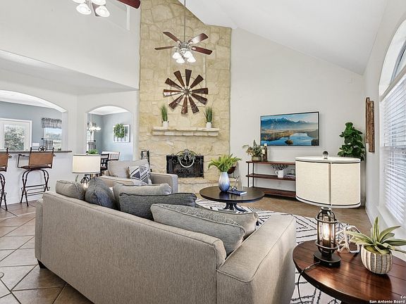 Escape to the beauty of Spring Branch, TX, with this spacious 4-bedroom, 2.5-bathroom home nestled on +/-1.75 acres of scenic Hill Country landscape. Offering nearly 2,400 square feet of thoughtfully designed living space, including two inviting living areas, this home is built for comfort, relaxation, and entertaining. The open-concept floor plan is bathed in natural light, creating an effortless flow between the living spaces. The modern kitchen boasts sleek appliances, ample cabinetry, and generous counter space-ideal for both everyday meals and hosting gatherings. Retreat to the primary suite, a private sanctuary featuring a spa-like en-suite bathroom with a soaking tub, dual vanities, and a spacious walk-in closet. Additional bedrooms offer flexibility, making them perfect for guests, a home office, or creative pursuits. Step outside to enjoy the extended back patio, perfect for outdoor entertaining or simply soaking in the peaceful surroundings. The property also features a raised garden, ideal for growing your own fresh vegetables, herbs, or flowers. Additionally, a prepped slab is ready to accommodate a new storage building, workshop, or office space, providing endless possibilities to customize the space to your needs. A two-car garage offers ample storage, and the home's prime location delivers the perfect blend of Hill Country serenity and modern convenience. Don't miss this incredible opportunity to own your own piece of Texas paradise!