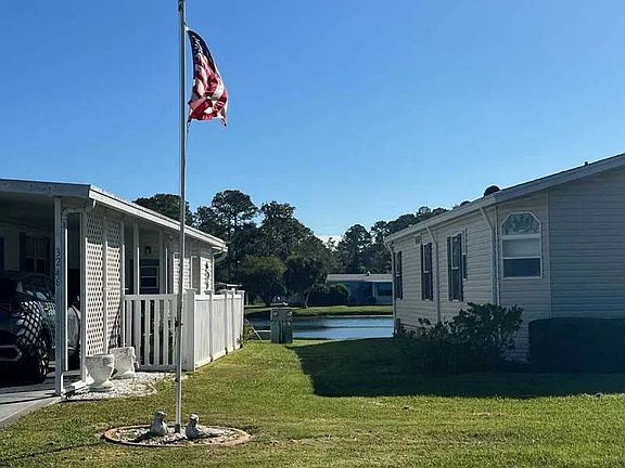 This 2/2 bath triple wide home is located in this beautiful active family owned and operated community. Upon entry, the large entry way leads to a spacious living room, with open concept to the dining room. Off the dining area is a bright and upgraded kitchen. The kitchen has brick deco backsplash and large pantry with a kitchen bar offering an eat in kitchen. The kitchen has stainless steel appliances, installed in 2023, as well as he counters. Both bedrooms and spacious and well-appointed with both having walk in closets. The master bedroom has an ensuite bathroom with a garden tub and another linen closet. The master bedroom has a private entry to the sunroom. Home has an inside laundry room. The sunroom is air conditioned and new Thermopane windows have been installed this year. It's spacious and is currently being used as a den and office. It also offers a perfect view of the pond in the back yard which backs up to the preserve offering well sought after privacy. No rear neighbors. Recently added to the home is a brand-new screen lanai on the front of the house, spacious and offers a partial view of Lake Jared. The home has side by side parking, no rearranging vehicles! and is beautifully landscaped offering great curb appeal. |The air conditioner is a 2021 and the roof was done in 2013. Wood laminate flooring, excluding the guest bedroom, were installed this year also. All this and an easy walk to the clubhouse and pool. Must see this home, beautifully updated and in great shape. For a private showing call Marge, the community Manager. Tax, title, registration, application and administrative fees extra.Price does not include sales tax, and fees.