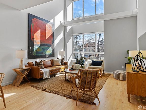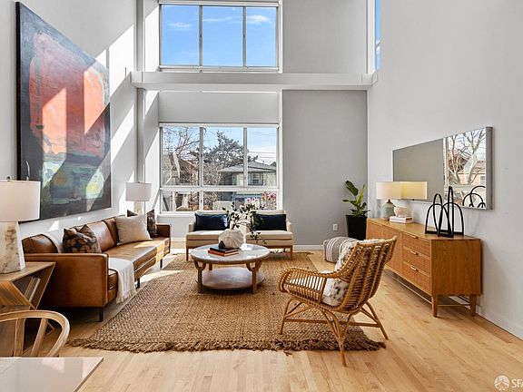 Welcome to this stunning three-level loft townhome, designed by renowned architect David Baker in the prestigious Magnolia Row community. This sophisticated residence offers a perfect balance of entertainment and relaxation, just moments from the Bay Area's tech hubs. Enjoy glorious morning light through expansive 22-foot floor-to-ceiling windows on the southeast-facing main level. The open-plan layout and thoughtfully updated Chef's kitchen with stainless steel appliances and sleek countertops make it perfect for everyday living and entertaining. Ascend the floating staircase to the renewed primary bedroom and bath, featuring new flooring, a modern vanity, updated fixtures, chic lighting, and a custom walk-in closet. Descend to the lower bedroom with new engineered flooring and a serene sunny patio adorned with flowering vines, custom pavers, and low-maintenance turf. The lower level also includes a private garage with stacked laundry facilities and additional driveway parking. Security features include SimpliSafe, Nest outdoor cameras, an electronic/keyless lock, and a smart thermostat. This magnificent townhome blends style, luxury, and convenience. Don't miss the opportunity to make it your new home.