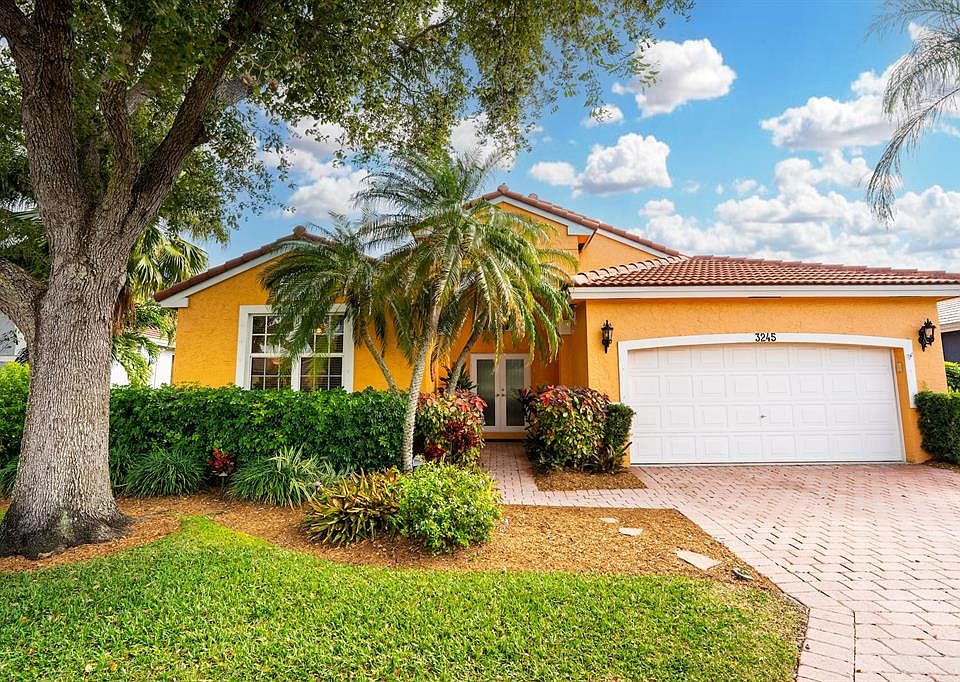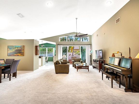Enter and marvel at the bright, open spaces & vaulted ceilings of this spacious 3 bed, 2 bath "split floor plan" built in1992. Be welcomed by an expansive interior space adorned w/ unique architectural designs, recessed lighting & ceiling fans throughout. Formal dining, an open kitchen w/ granite counters, s/s appliances, bar seating & plenty of space for entertaining. A spacious primary suite offers a sitting area, ample closet space & access to your outdoor space. Relax in the tranquility, of a peaceful, freshly landscaped private garden/patio oasis perfect for entertaining and BBQ. A full 2 car garage w/ paver driveway and interior laundry. Peace of mind w/ full impact protection, new roof 2021, A/C & fence 2019 & freshly painted 2018. Gated community w/ waterfront pool & tennis courts.