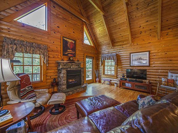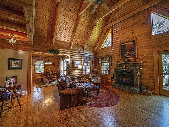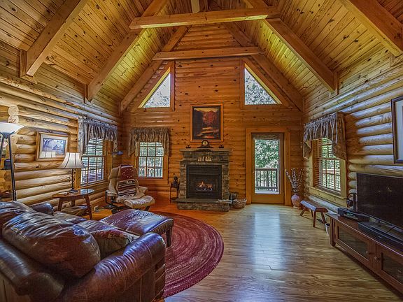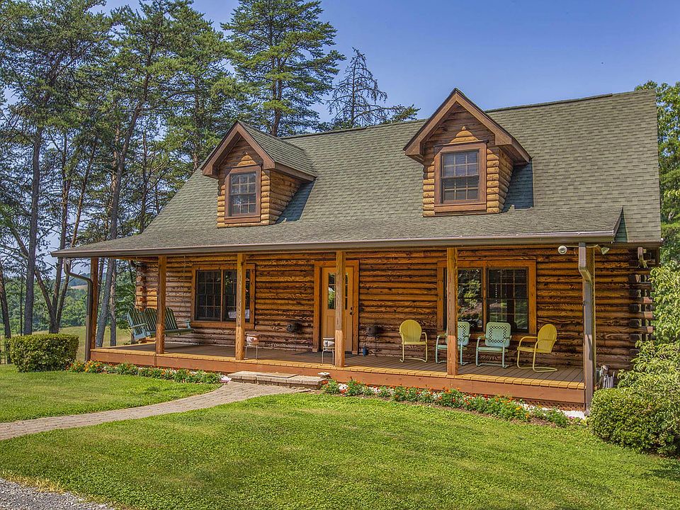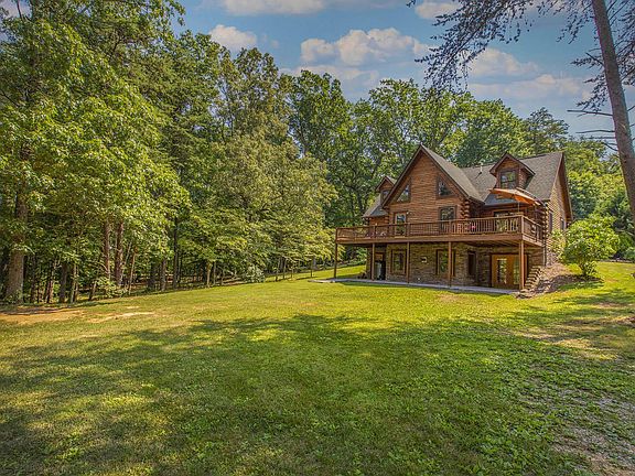 An amazing custom-built log home nestled on 5.8 acres of privacy in the heart of Fincastle. This home features 3BRs, 2.5 baths and is full of the character and charm you would expect from a log home. The entry level features hardwood floors throughout, a wonderful living room with vaulted ceilings and a gas log fireplace, a spacious master BR w/ walk-in closet, eat-in kitchen with built in coffee bar, and half bath. The upper level boasts 2 additional BRs, and a full bath. The inside of this home is completed with an unfinished basement w/ 9ft ceilings, rough-in for a bath, pellet stove and perfect storage space. The outside features a wonderful deck to enjoy the privacy of your backyard, a rocking chair front porch, mature beautiful landscaping,