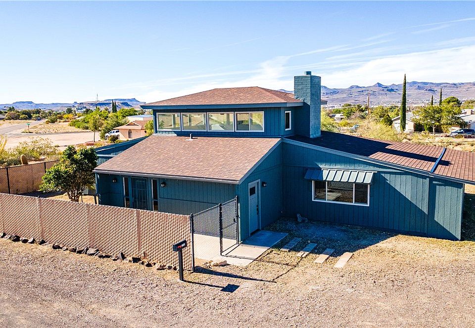 This iconic Kingman home offers stunning panoramic views of the Hualapai and Cerbat Mountains and is packed with charm and modern updates. Featuring 3 bedrooms, 2 bathrooms, and a spacious 1-car garage, this 1,800+ sq. ft. residence includes a unique second-story loft that takes full advantage of the surrounding scenery. Recently refreshed with new interior and exterior paint, custom-tiled showers, new LVP flooring, stylish fixtures, and more, this home beautifully blends character and contemporary finishes. Floor to ceiling wood burning fireplace. Situated on just over 1 acre, the property includes a fenced yard for privacy and plenty of room to build a detached garage or workshop. With its elevated design, incredible views, and thoughtful upgrades, this one-of-a-kind home is truly a must-see.